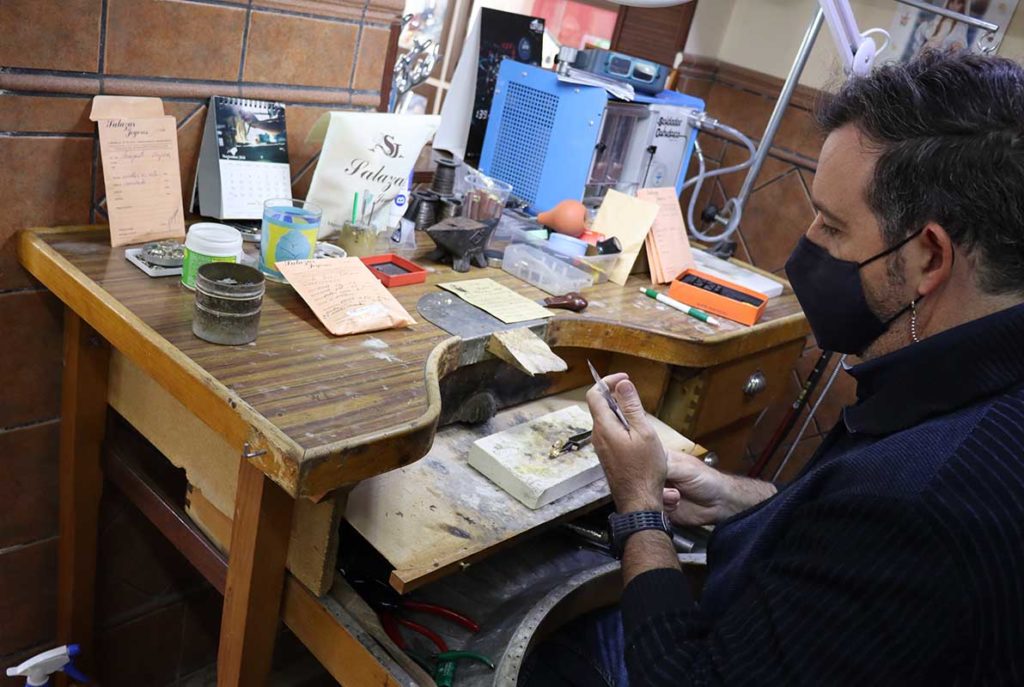 Salazar Joyeros es un establecimiento especializado en la venta de joyas y relojes entre otros servicios que cuenta con un genuino taller artesano propio de fabricación y reparación. La segunda generación de la familia de Manuel Salazar se ha hecho cargo de una tienda que presta servicio en el centro de Antequera desde su fundación en 1963. Salazar se inició como aprendiz a los 13 años trabajando para joyeros veteranos de Antequera, tierra de reputados artesanos de la plata y la joyería. A los 22 años decidió dar el salto y abrir por su cuenta un pequeño taller en su propio hogar donde realizaba trabajos para comerciales de otras joyerías y a vecinos de Antequera y de la comarca. La satisfacción que le trasladaban sus primeros clientes le hizo apostar en 1982 por adquirir un local, inaugurando la primera sede de Joyería Salazar en calle Toronjo, cerca de su ubicación actual. De esta forma pudo añadir a su servicio de fabricación y reparación de joyas, también el de venta de relojería. A principios de los 90 se mudaría a su ubicación actual, la céntrica calle comercial Merecillas. Poco a poco el incremento en el volumen de encargos le hizo ampliar su plantilla contratando a un veterano de la escuela artesana antequerana el conocido como Paco ‘El bigotes’. Año tras año, el buen hacer de sus trabajos y la calidad de sus productos le hicieron crecer en clientes locales y de la comarca. Hoy, Manuel, su mujer y sus dos hijos continúan acudiendo a diario al taller para atender con la misma atención y trato personalizado, en muchos casos, a los hijos e incluso nietos de los primeros clientes. En el Centro de Antequera Joyeros y relojeros